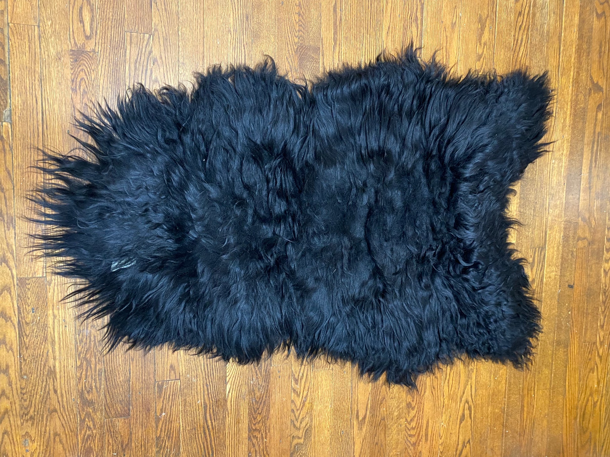 This black fleece is shaggy and deep enough to sink into and the undercoat is delightfully soft. This long sheepskin is perfect for a capelet, or just for sitting or sleeping on for extra joint protection in the cold!