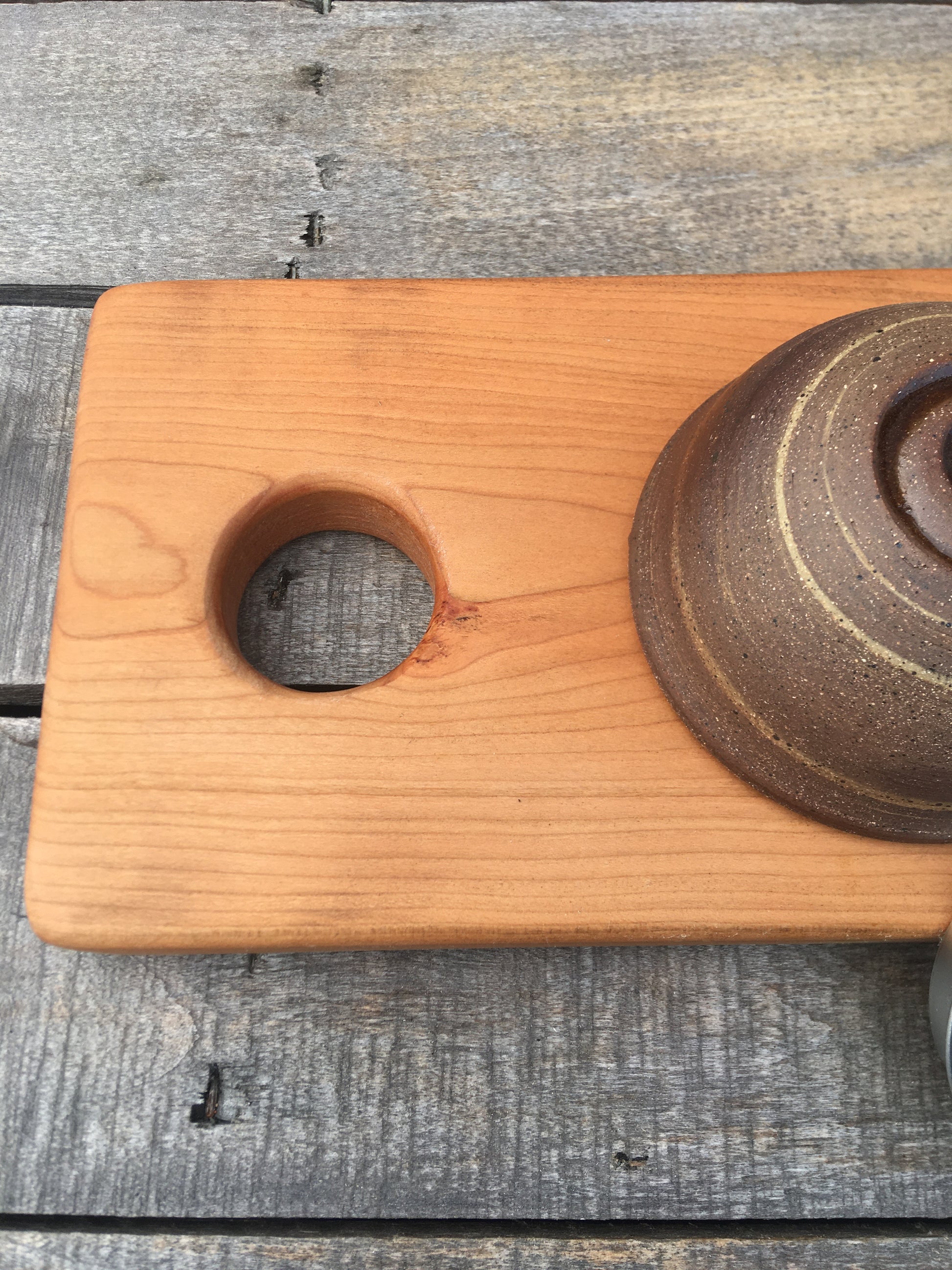 Also known as a personal feast plate, this board is the perfect size. Loaded with meats , cheeses and bread for a light snack it comes with a small cup, for your favorite shot of something or some lovely dipping oil.