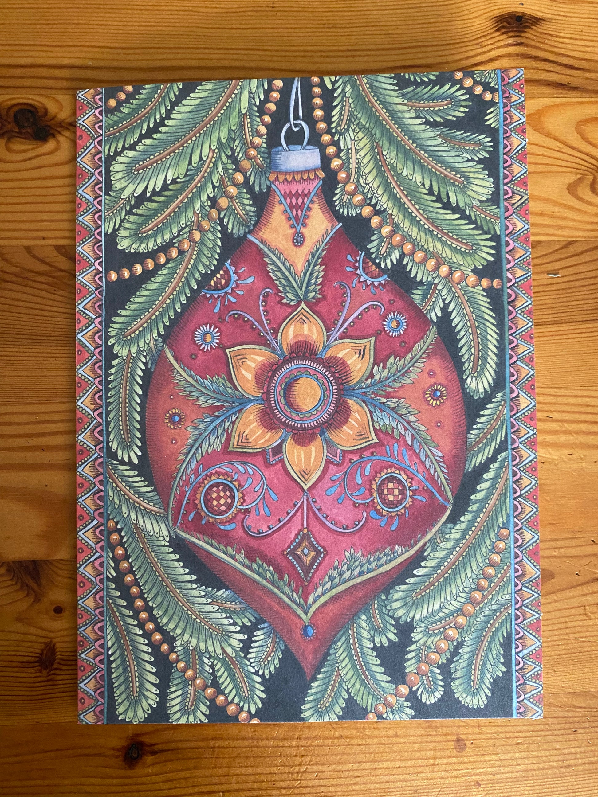 Evergreen and Ornament Christmas Card