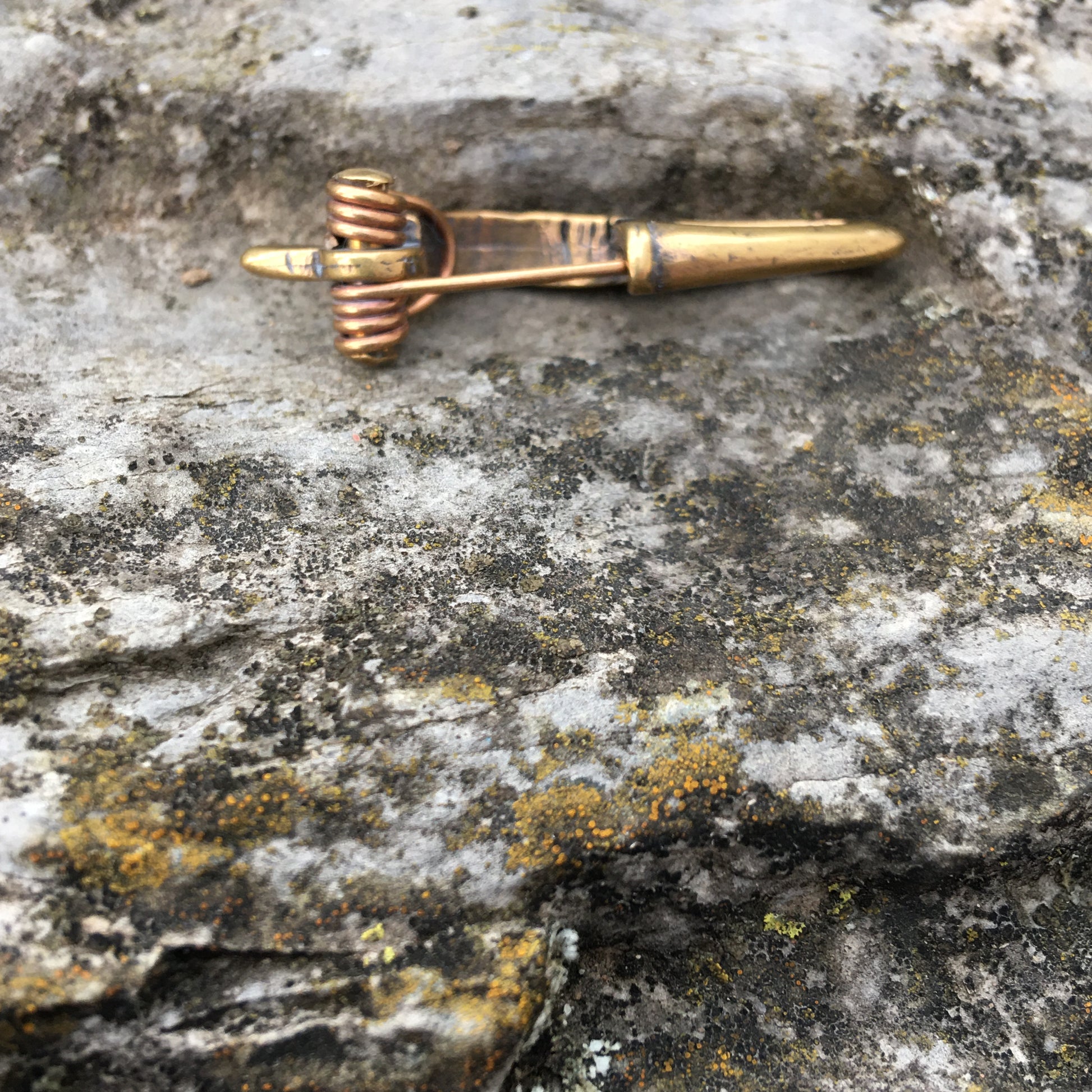 It's the details that make this tiny pins very large statement! From the hand carved mold , to the hand wrapped spring this is a very elegant brooch based on a Roman artifact.