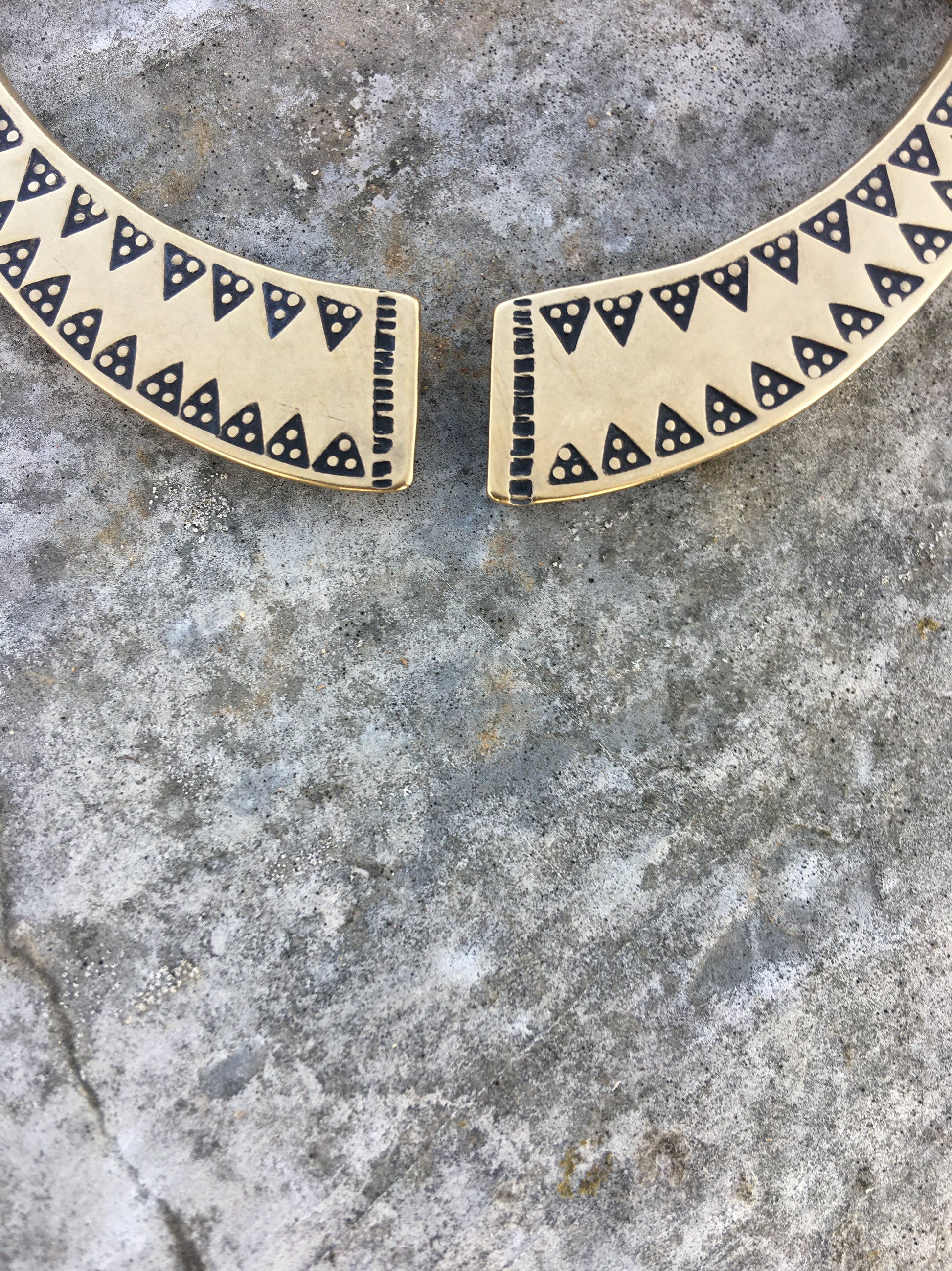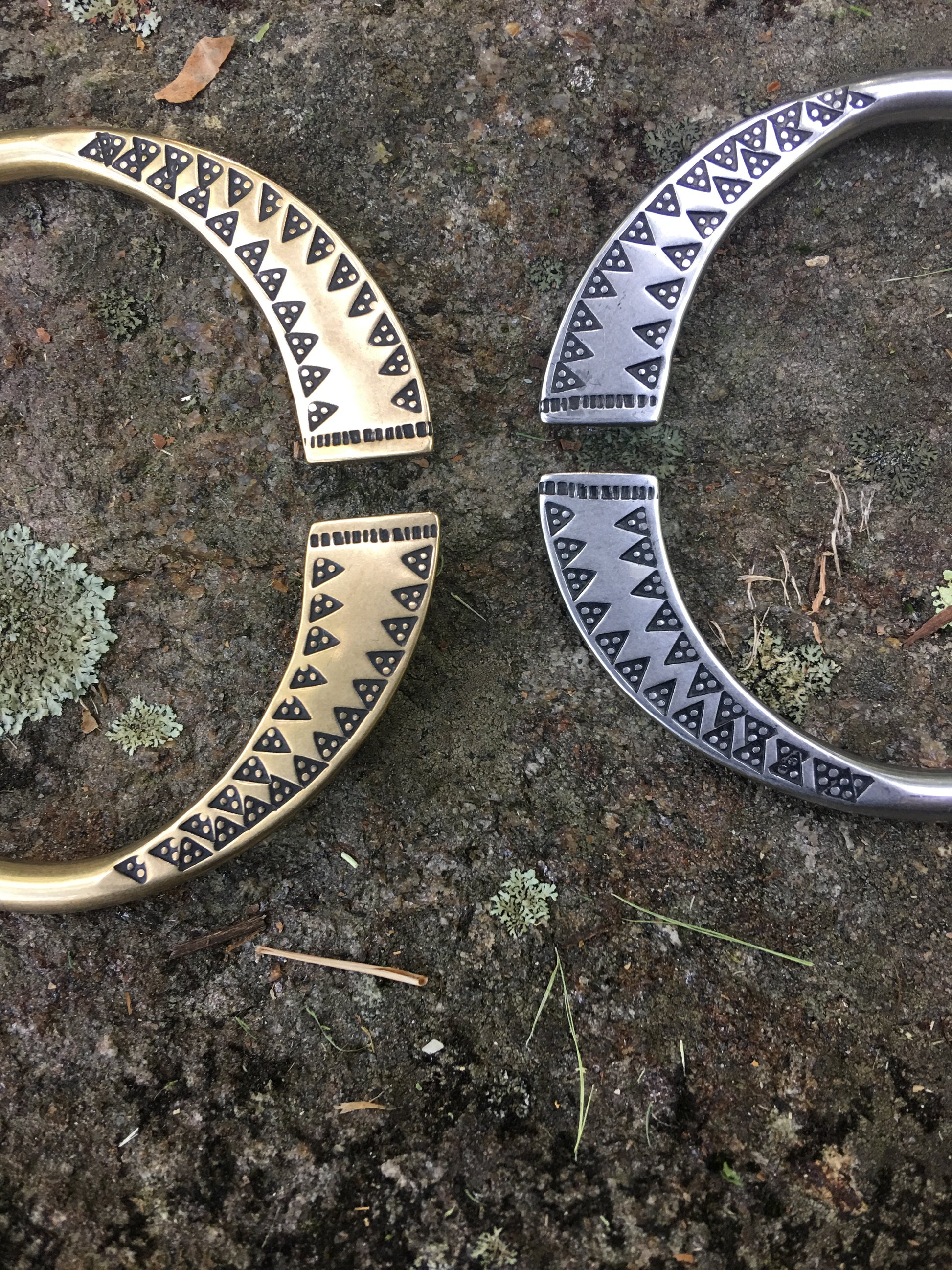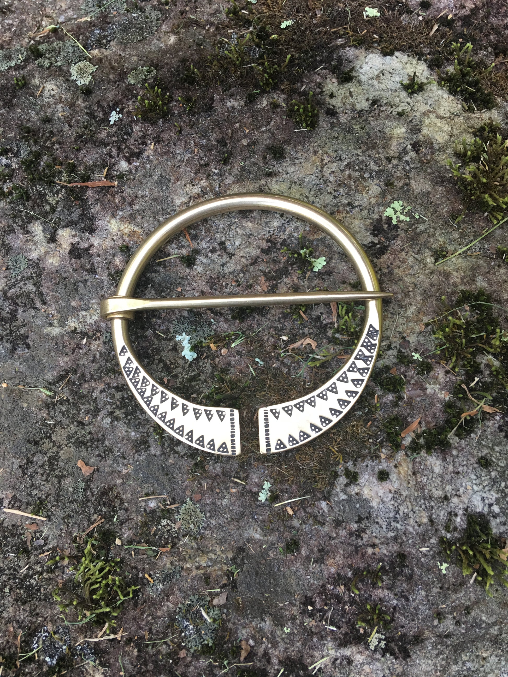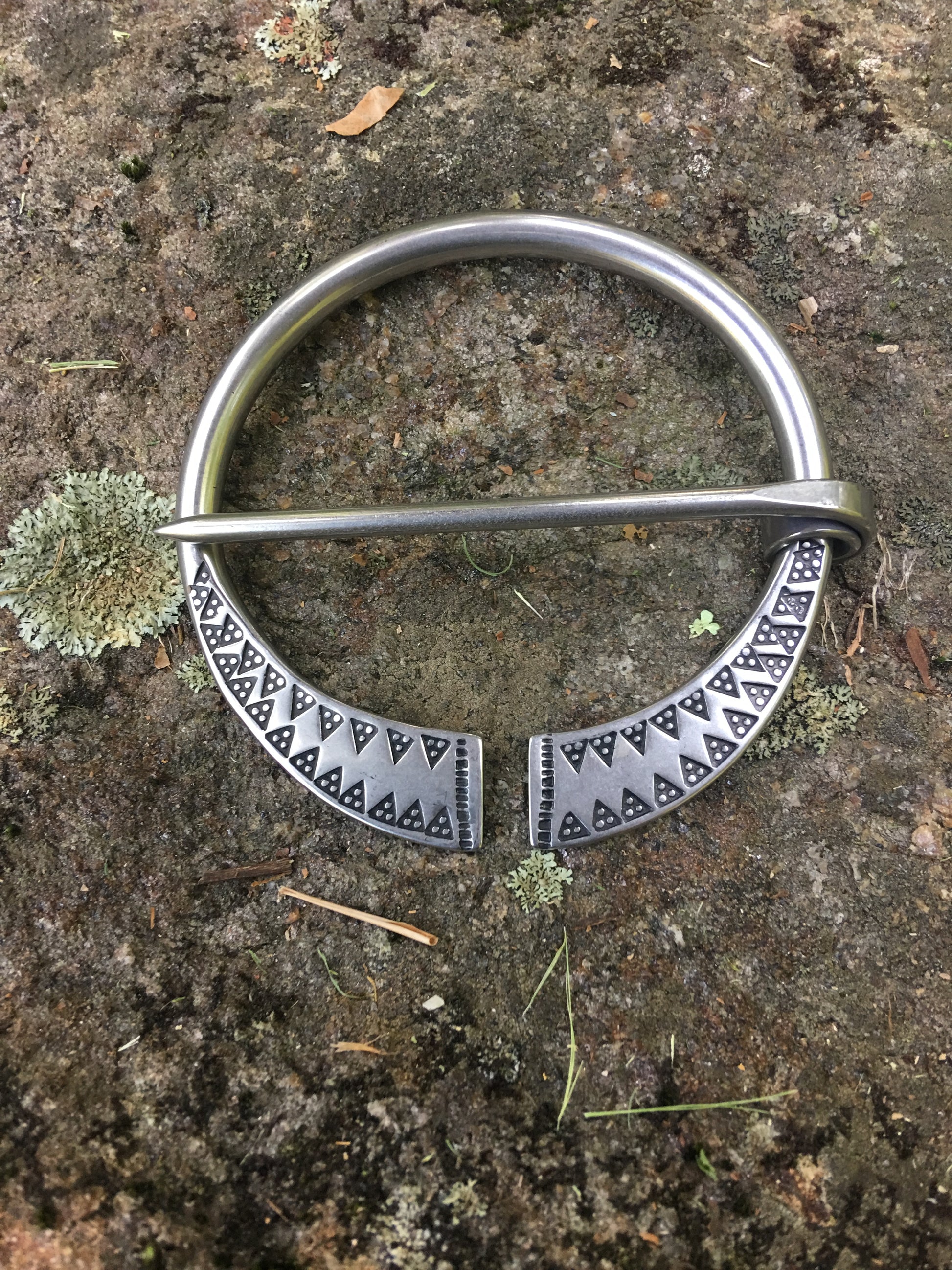 Hand made from start to finish, this brooch is forged and then struck with a hand-carved , highly detailed triangle stamp.